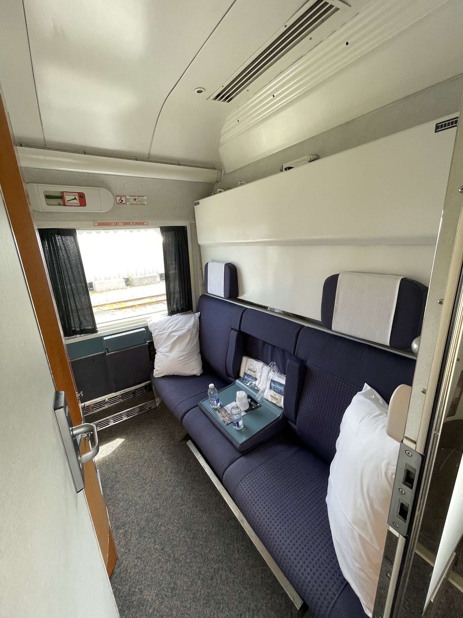 One thing to keep in mind, which I only discovered after booking, is that VIA is currently not allowing the same room to be occupied more than once per trip. Unfortunately this meant that my booking this room for Halifax-Truro would block it for the rest of the trip as well. This also means that the availability of shorter distance rooms may be limited, as VIA can only sell you a room if there is still one available for the full distance. This is being handled manually, so the reservations system may show and allow you to book something that isn’t actually available.